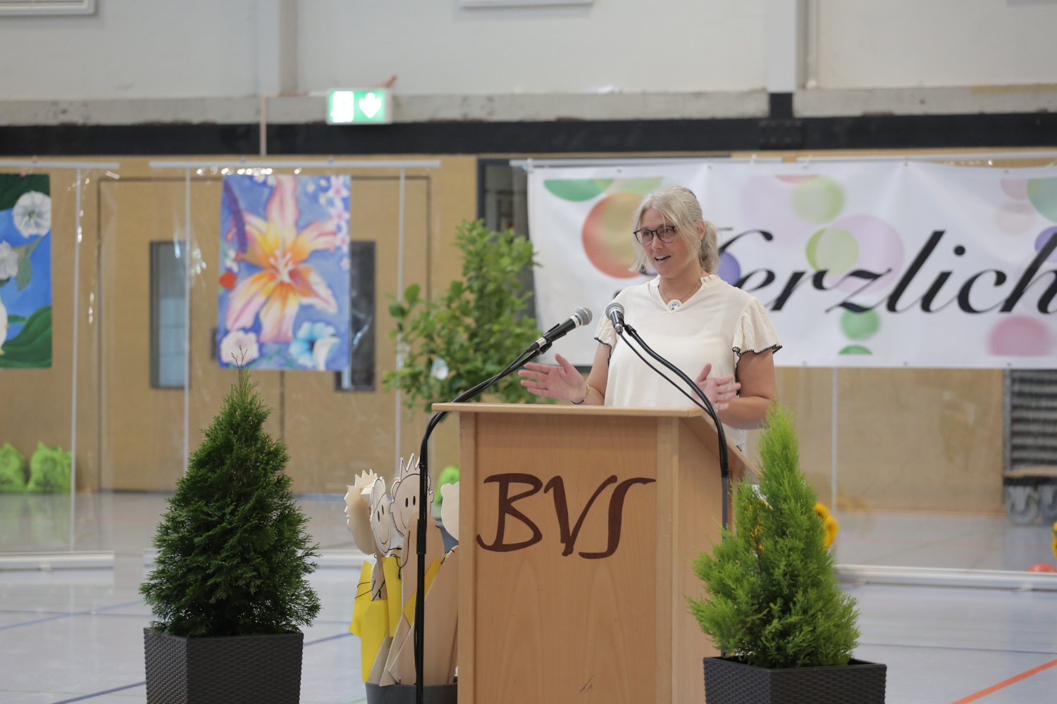Auch Tanja Zelenic, die Vorsitzende des Schulelternbeirats, lobte die Bertha als eine Schule für alle, in der jeder in seinem Tempo lernen könne, und bestärkte die Schülerinnen und Schüler stolz zu sein, in diesem Umfeld aus Vielfalt und Möglichkeiten großwerden zu können.
