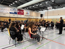 Nach jahrelangen Bewerbungsversuchen machten sich die stetigen Bemühungen von Musiklehrerin Susanne Riedl-Komppa nun endlich bezahlt – am Donnerstag, den 11.09. war die hr-Bigband zu einem gemeinsamen Konzert mit dem Schulorchester an der Bertha-von-Suttner-Schule in Nidderau zu Gast.