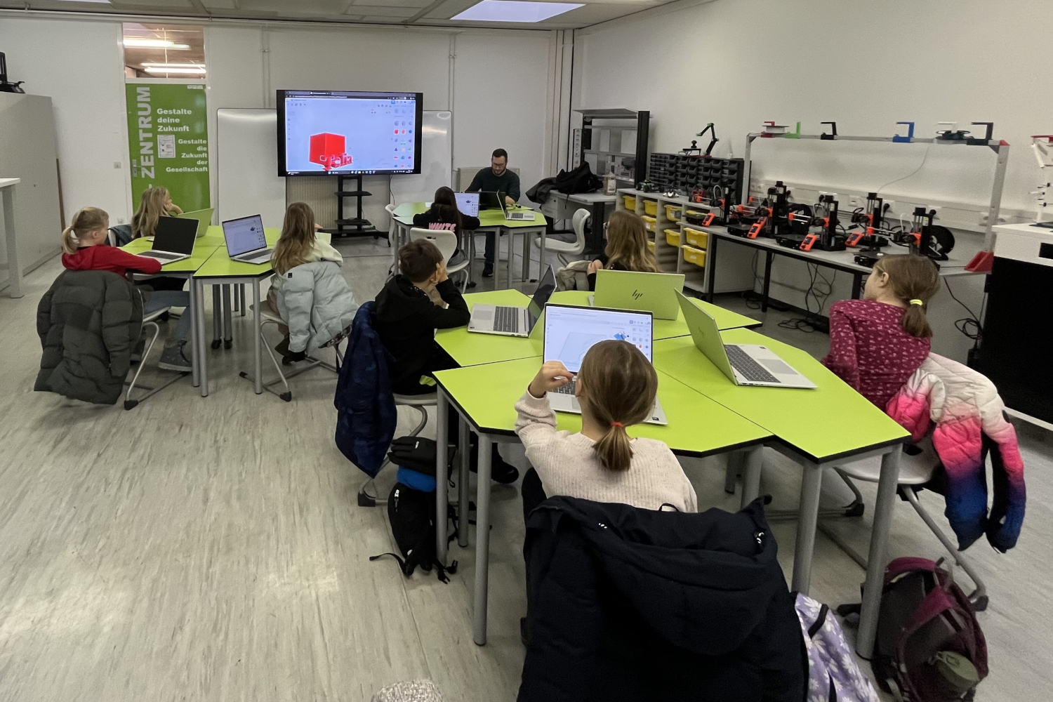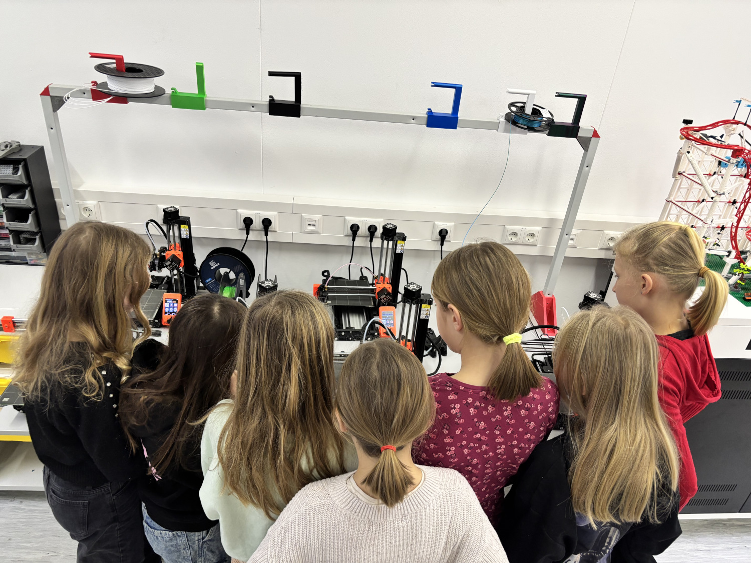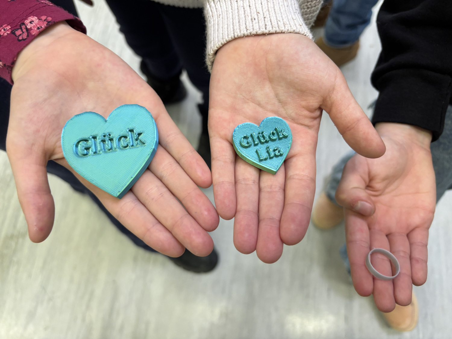 Leiter des MINT-Zentrums, Matthias Stein, führte die Grundschülerinnen und Grundschüler an den 3D-Druck heran. Hier konnten sie sich eine Form und Gravur aussuchen, den Prozess verfolgen und nachvollziehen und ihre entstandenen Glücksbringer am Ende mit nach Hause nehmen. „Ich freue mich immer, Grundschulkinder im MINT-Zentrum begrüßen zu dürfen“, so Stein, „Die Freude und der Enthusiasmus, mit dem Kinder die Möglichkeiten bei uns entdecken, ist immer wieder beeindruckend.“