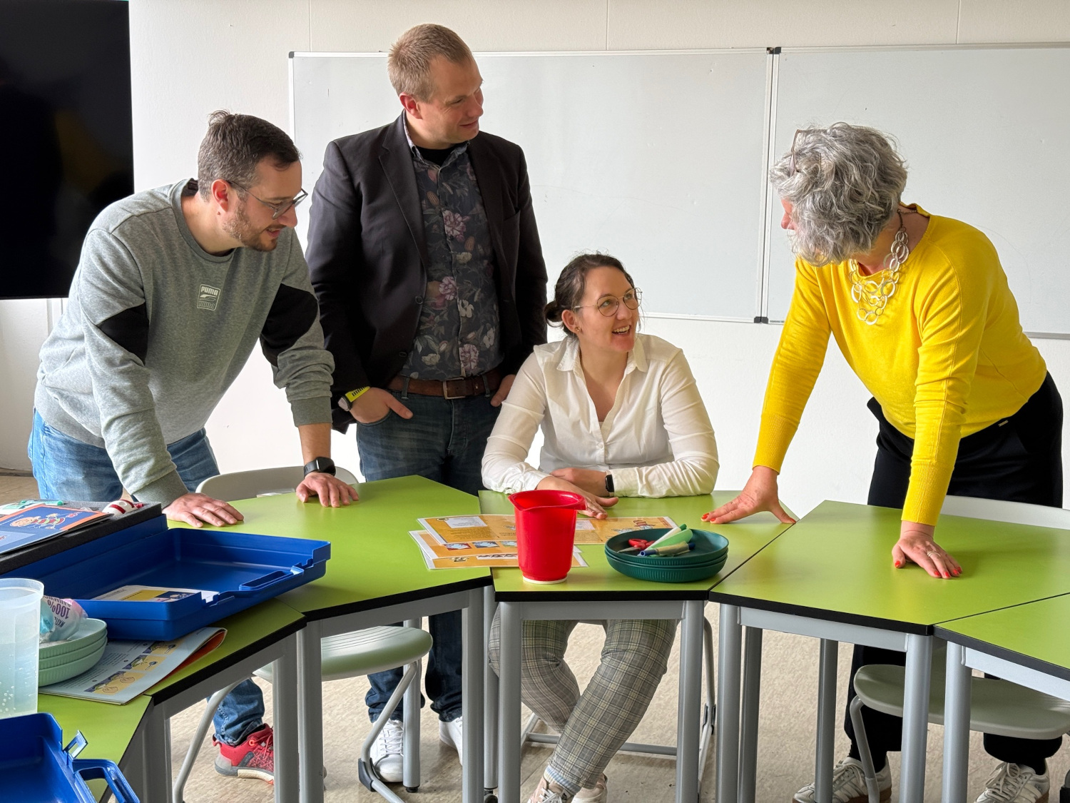 Daher setzte sich Frau Rühl dafür ein, dass der Verband die MINT-Zentren mit Experimentierkisten unterstützt. Kürzlich fand die Überreichung der Kisten mit den chemischen Experimentiermaterialien in der Bertha statt. Im Anschluss daran erhielten drei Lehrkräfte aus dem MINT-Zentrum sowie den Fachbereichen, Biologie, Chemie und Physik der Integrierten Gesamtschule eine umfangreiche Einweisung in den Leitfaden mit den Versuchsanordnungen und den Materialen. „Wir wollen einen Beitrag dazu leisten, dass sich Kinder früh mit naturwissenschaftlichen Phänomenen beschäftigen können und so ein besseres Verständnis von Technik und Naturwissenschaft im Erwachsenenalter erhalten“, erläuterte MINT-Bildungsexpertin Rühl einführend.