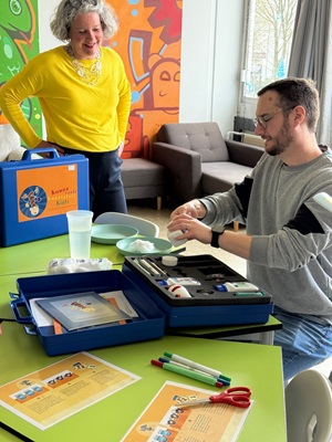 Mitglied der Schulleitung und Chemielehrer Andreas Dotzauer sowie MINT-Zentrum-Verantwortlicher Matthias Stein sehen in der Experimentierkiste „eine gute Chance, um Grundschulkindern mit den erprobten Experimentieranleitungen und Materialien die Phänomene der Naturwissenschaften anschaulich zu vermitteln.“ Künftig sollen auch ältere Schülerinnen und Schüler zusammen mit den Grundschulkindern in einem Workshopangebot des MINT-Zentrums gemeinsam forschen.