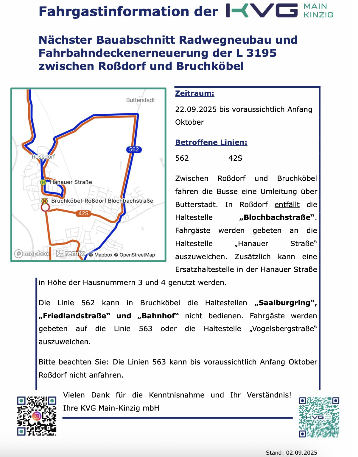 September 2025 Fahrgastinformation der KVG Main-Kinzig