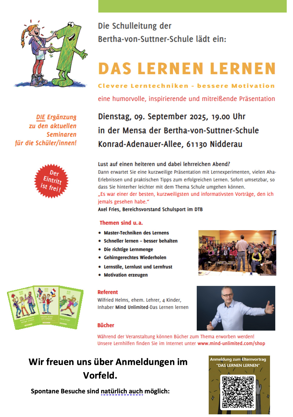 Diesen wichtigen Fragen ging Wilfried Helms zwei Wochen lang auf den Grund und gab der Schulgemeinschaft der Bertha-von-Suttner-Schule in Nidderau zahlreiche Antworten. ...