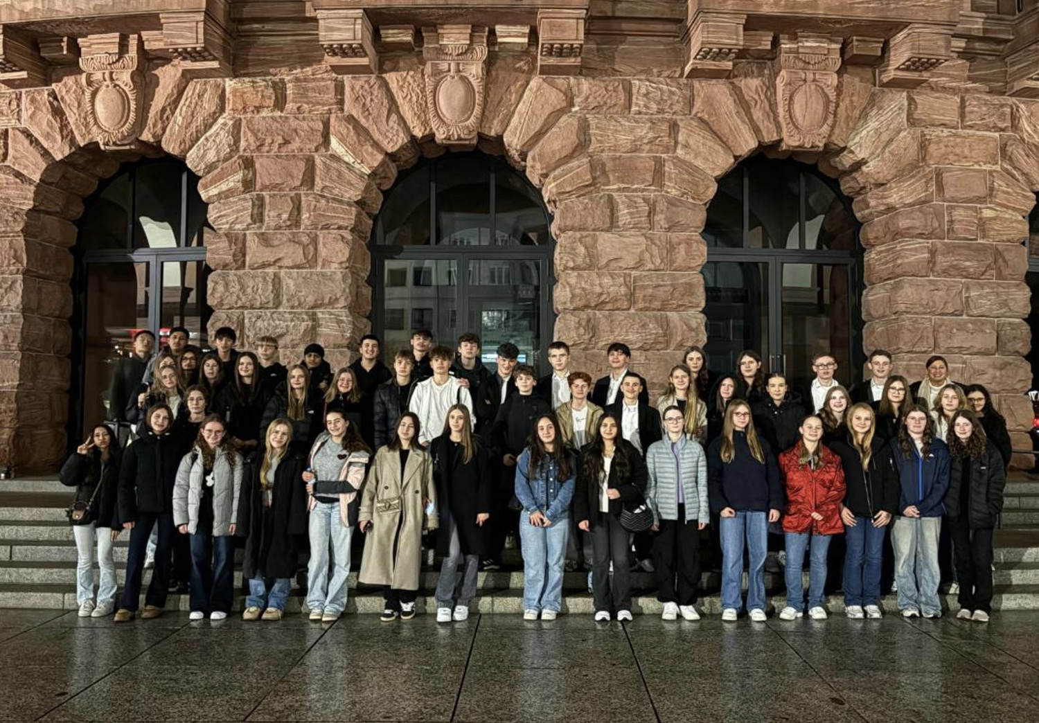 Eine lange Anreise durch Dunkelheit und Stau führte die Schülerinnen und Schüler der Klassen 9A1 und 9A2 mit ihren Deutschlehrerinnen Katharina Maiwald und Kerstin Petsch am Mittwoch, dem 29.10.25 zum Staatstheater Mainz. Dort besuchten sie das Theaterstück „Fast genial“, eine Inszenierung des gleichnamigen Romans von Benedikt Wells, der zuvor im Rahmen des Deutschunterrichts gelesen wurde. ...