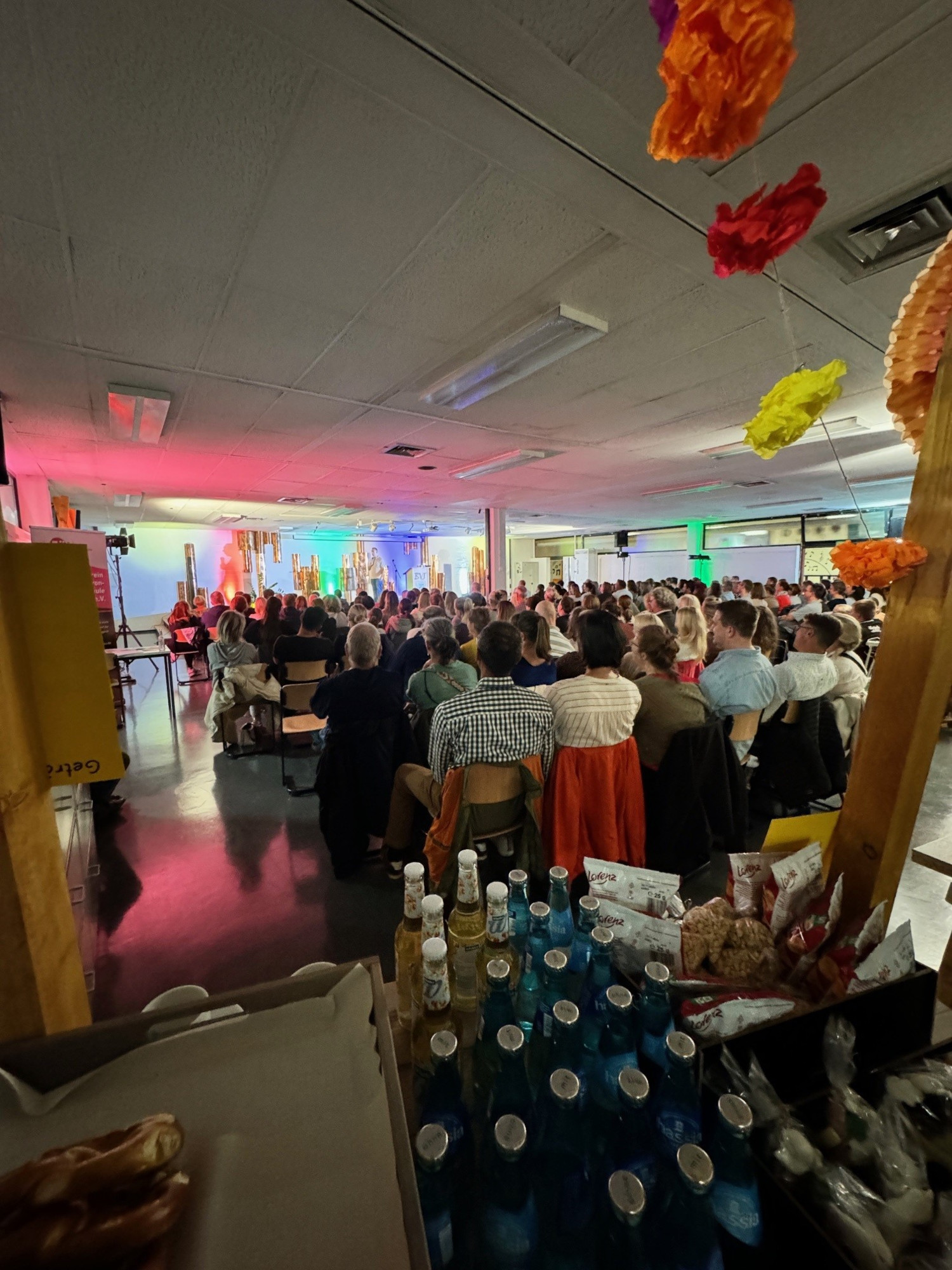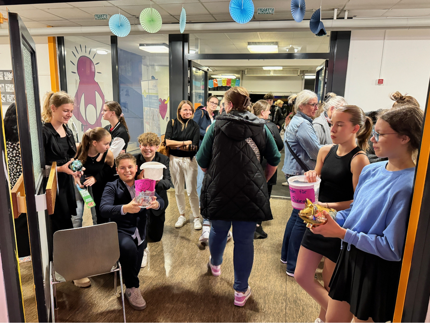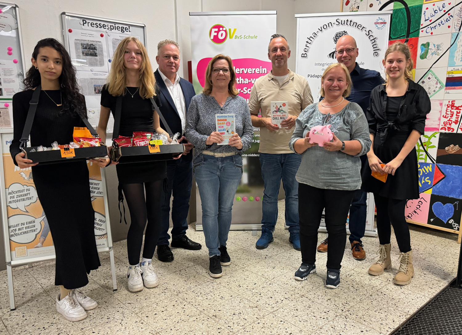 Mit einer fein abgestimmten Mischung aus wortwitziger Comedy, pädagogischer Analyse und biologischen Hintergrundinformationen holte Matthias Jung, Diplom-Pädagoge, Vater, Komiker und Autor, die leiderfahrenen Teenager-Eltern genau dort ab, wo sie nach ihrer letzten Auseinandersetzung mit dem Nachwuchs ratlos bis verzweifelt zurückgeblieben waren. Gleichermaßen humor- wie liebevoll leuchtete er die Konfrontationslinien aus, die sich zwischen Heranwachsenden und ihren Eltern ergeben, wenn der hormonelle Vulkan im pubertierenden Körper so richtig am Kochen ist. Für die Eltern im Publikum reihte sich ein Aha-Erlebnis an das andere und am Ende die tröstliche Erkenntnis: Wir sind nicht allein, in anderen Familien spielen sich exakt dieselben Dramen ab um Körperpflege, Essgewohnheiten, Hilfe im Haushalt, Vergesslichkeit, Kleidungsvorlieben und natürlich das Chaos im Kinderzimmer, wo der Jugendliche seiner Lieblingsbeschäftigung nachgeht, dem Chillen. Und wer sich bislang gefragt hatte, wie der Nachwuchs so ausdauernd mit Nichtstun im zugemüllten Kinderzimmer verbringen kann, bekam an diesem Abend die plausible Antwort: Er reift – was auch den Geruch im Zimmer erkläre. Abnabeln, diskutieren, rebellieren – wenn die Symptome des notwendigen Selbstfindungsprozesses die elterliche Geduld strapazieren, ist ruhig bleiben eine Kunst. Zumutungen und Beleidigungen dennoch mit Humor abzufangen, rät Mattias Jung, denn: „Wenn sie uns beleidigen, brauchen sie unsere Hilfe“, warb er um Verständnis für motzige und renitente Teenager. „Sie haben nichts gegen uns, sondern sie werden unter erschwerten hormonellen Bedingungen erwachsen.“ Leider komme bei den radikalen biochemischen Umbauprozessen des Gehirns der vernünftige Teil zum Schluss, so die wissenschaftliche Erklärung für die erstaunlichen und mitunter bestürzenden Wesensveränderungen, für die es immerhin einen Trost gebe: Das „Best off“ bleibe. Bis es soweit ist, sei es Aufgabe der Eltern, im Gespräch zu bleiben, die Kinder ernst zu nehmen, an die eigene Pubertät zu denken und Vertrauen zu haben. Denn: Es gibt einen Verbündeten in diesem schwierigen Prozess: „Die Zeit ist auf unserer Seite“, ermutigte Matthias Jung zum Abschluss des Vortrags seine Zuhörerschaft. Organisiert und finanziert wurde die Veranstaltung gemeinsam vom Förderverein und dem Schulelternbeirat mit dem Ziel, die Schulgemeinschaft zu stärken und innerhalb der Elternschaft nicht nur finanzielles Potenzial, sondern auch die möglicherweise noch schlummernde Bereitschaft für mehr ehrenamtliches Engagement in einem der schulischen Gremien zu aktivieren. Dass davon innerhalb der Bertha schon ganz viel vorhanden ist, bewies das bunte Drumherum, mit dem schuleigene Kräfte aus den Jahrgängen acht bis zehn die Veranstaltung zu einem gelungenen Gesamtpaket machten. Das Technik-Team von Jan Härterich sorgte für die professionelle Bühnenausleuchtung und eine störungsfrei abgestimmte Tonmischung, während die Achtklässler vom WPU „Schülercafè“ unter der Leitung von Sofia Santiago vor dem Auftritt und in der Pause die Wartezeit mit einem Angebot aus süßen Überraschungstüten und Knabbereien verkürzten.