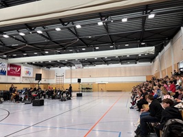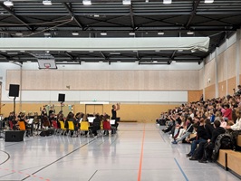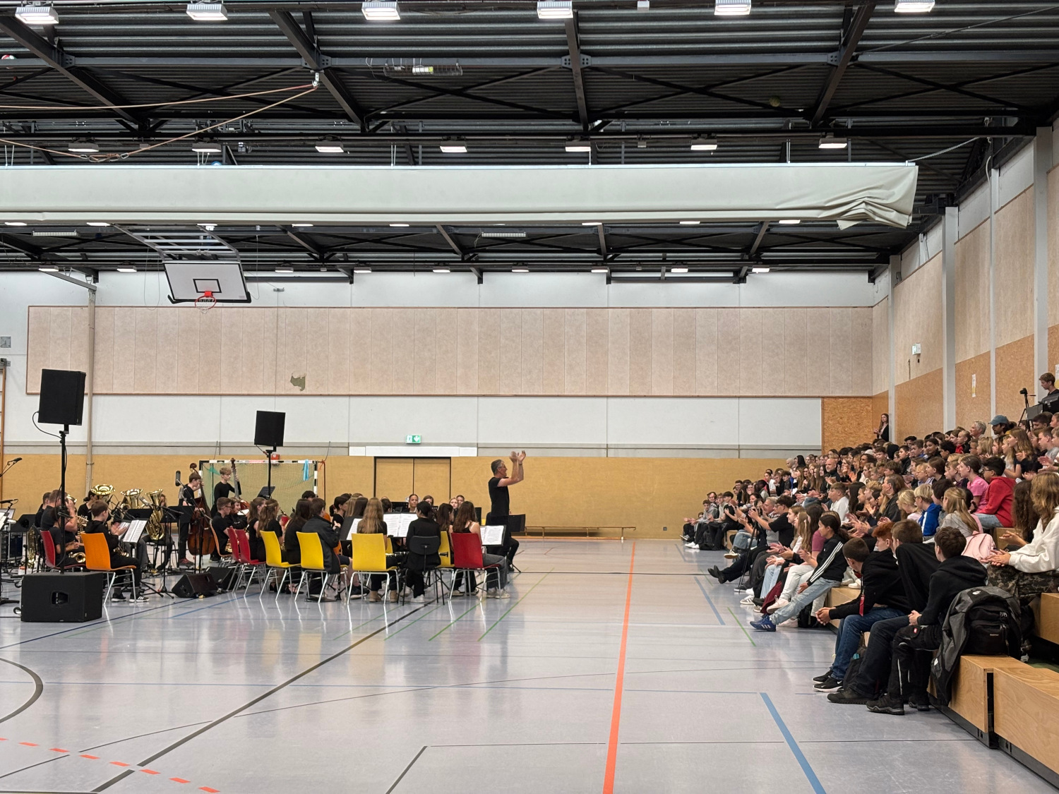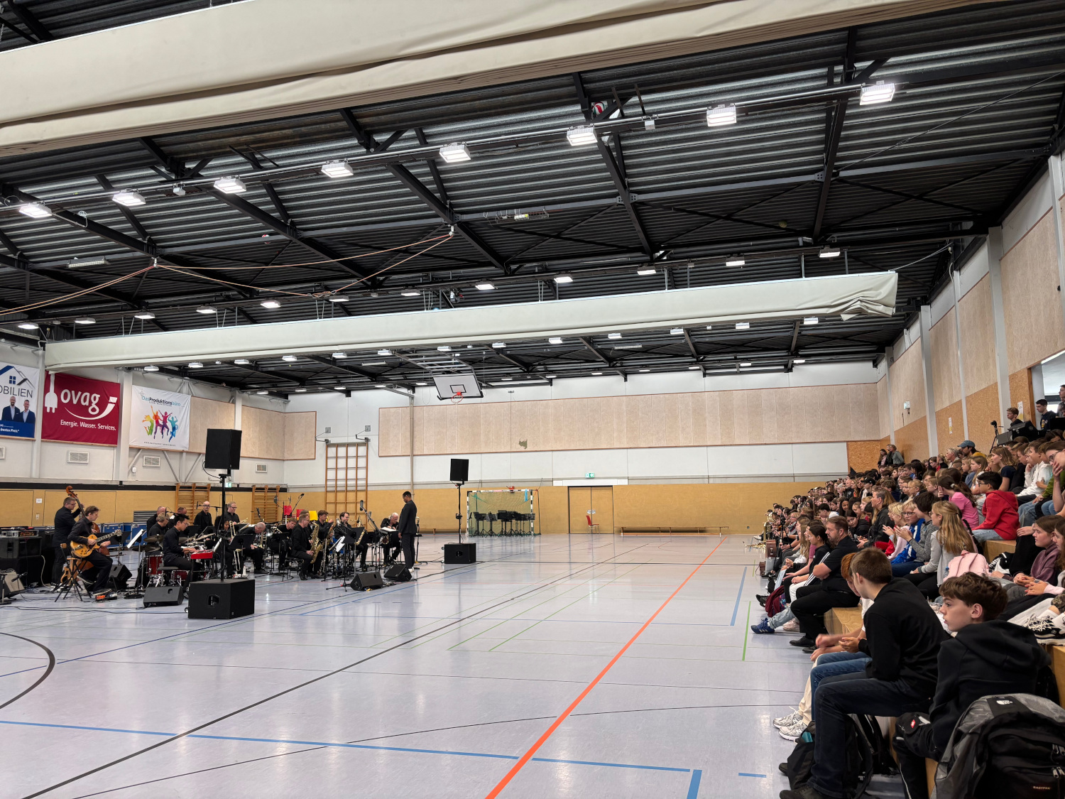 Zahlreiche musikinteressierte Klassen aller Jahrgänge, darunter insbesondere die Profilklassen mit dem Schwerpunkt Musik, fanden sich in der Sporthalle ein, um der Musik zu lauschen. Schulleiter Harald Klose freute sich sehr, die professionellen Musiker an seiner Schule begrüßen zu dürfen, denn gerade als Schule mit musikalischem Schwerpunkt möchte die Bertha-von-Suttner-Schule den Schülerinnen und Schülern solche einzigartigen Erfahrungen ermöglichen.