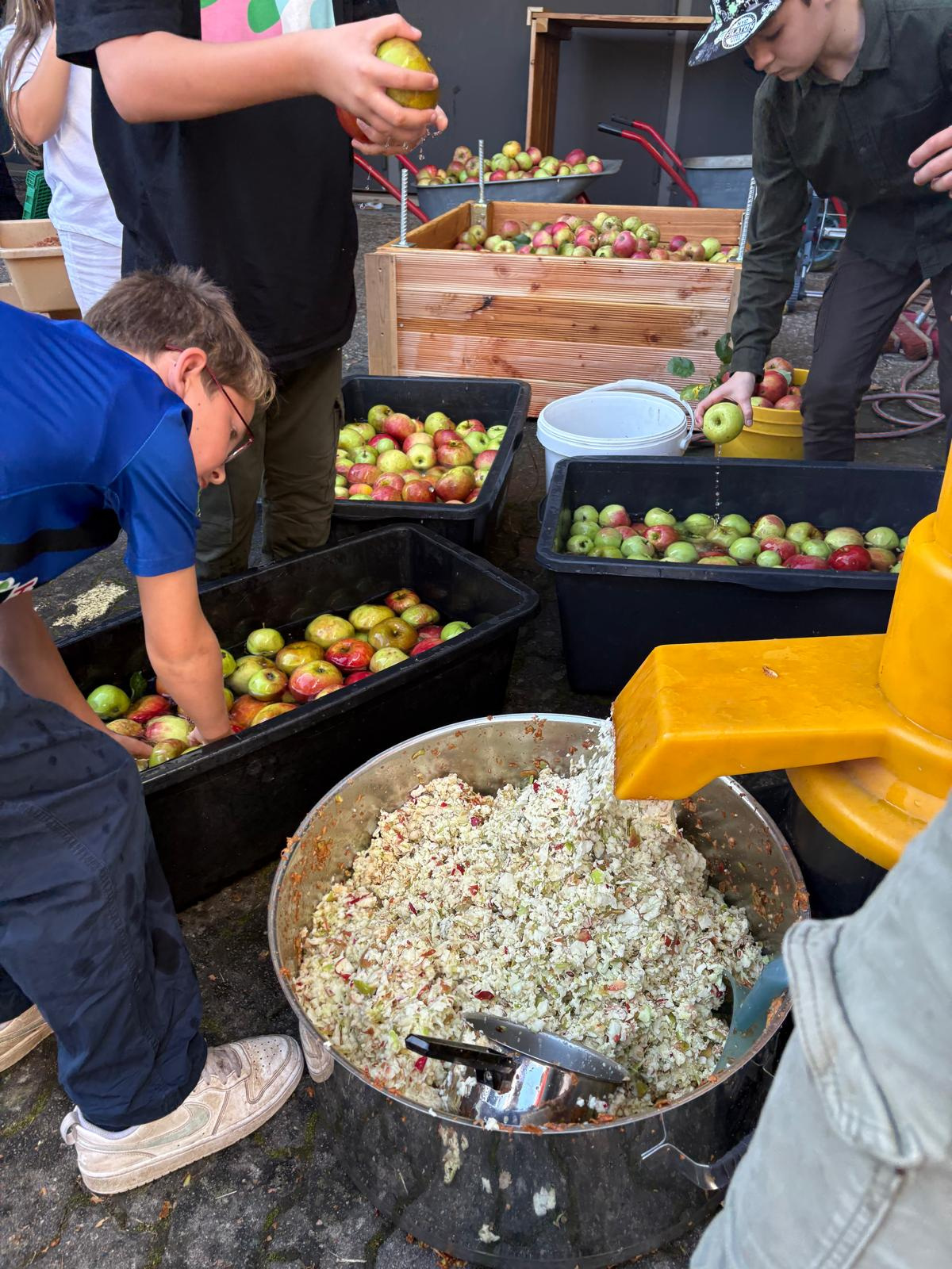 Das Apfelsaftkeltern hat an der Bertha mittlerweile langjährige Tradition und zeigt, dass nachhaltiges Handeln und Teamarbeit jede Menge Freude und Genuss bereiten können.