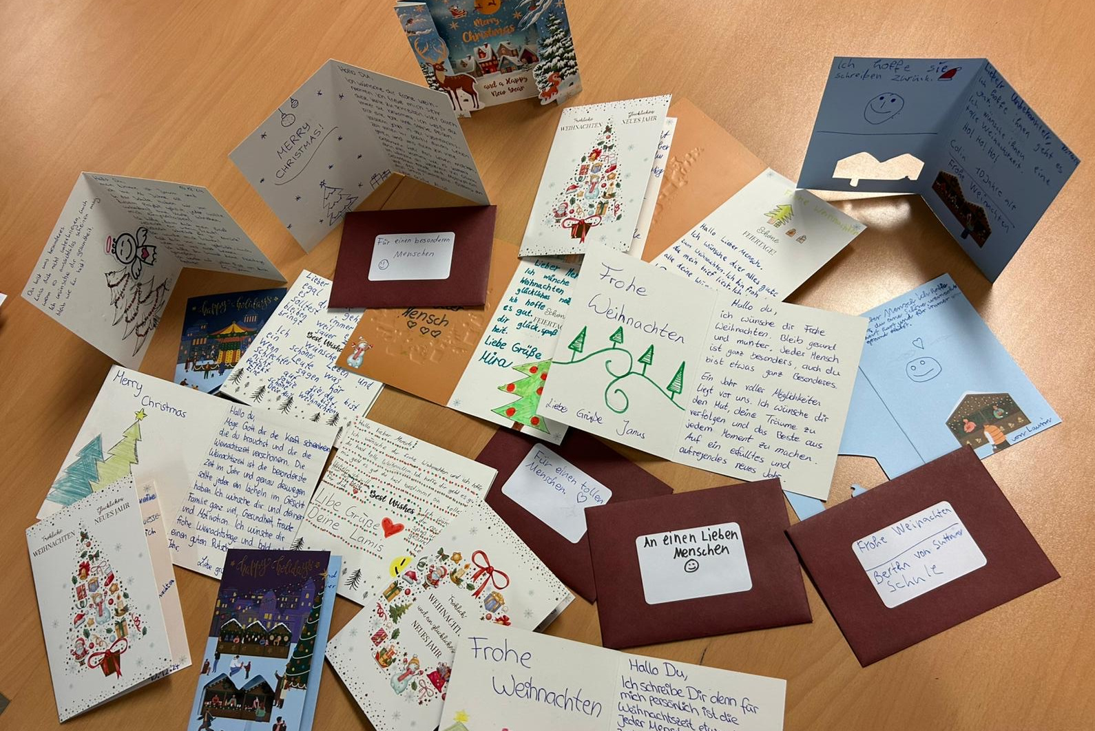 Mit den bewegenden Worten „Ich schenke dir mit diesem Brief ein Lächeln“ begann eine besondere Aktion an der Bertha von Suttner Schule. Schülerinnen und Schüler der Klassen 5c und 5g, 7a und 7b und 10B4 schrieben in der Vorweihnachtszeit liebevoll gestaltete Weihnachtskarten für Menschen mit Behinderungen, die in einer Caritas-Werkstatt arbeiten. Die Idee dahinter: Mit einer persönlichen Nachricht Hoffnung und Freude schenken.