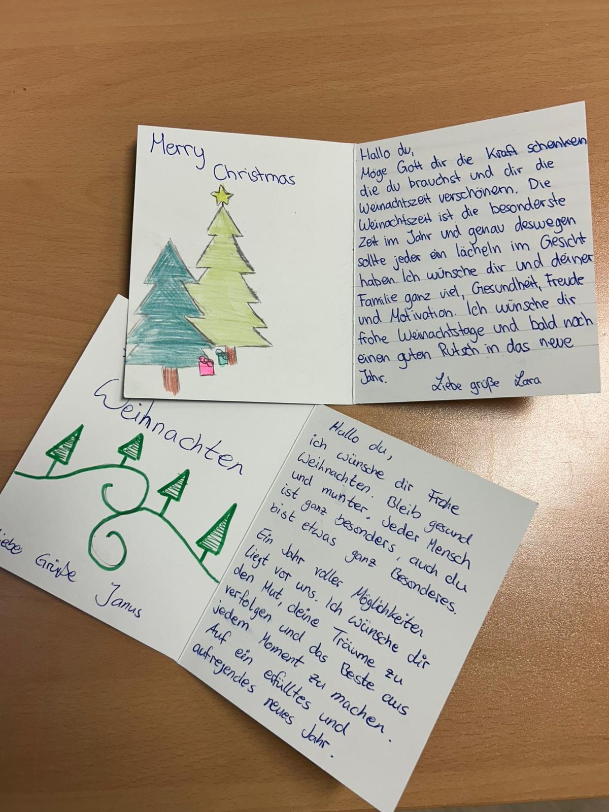 Unterstützt wurde die Aktion von den Lehrerinnen Carla-Sophia Betz und Rahile Rahimi. Mit Sorgfalt und Herzenswärme entstanden zahlreiche liebevoll gestaltete Karten. Ein Schüler schrieb beispielsweise: „Du bist perfekt, so wie du bist“, während ein anderer Weihnachtsgruß lautete: „Dieser Gruß soll von Herzen sagen, viel Freude an deinen Weihnachtstagen.“ Die Schülerinnen und Schüler zeigten dabei nicht nur Empathie, sondern auch ein starkes Bewusstsein für soziale Verantwortung.