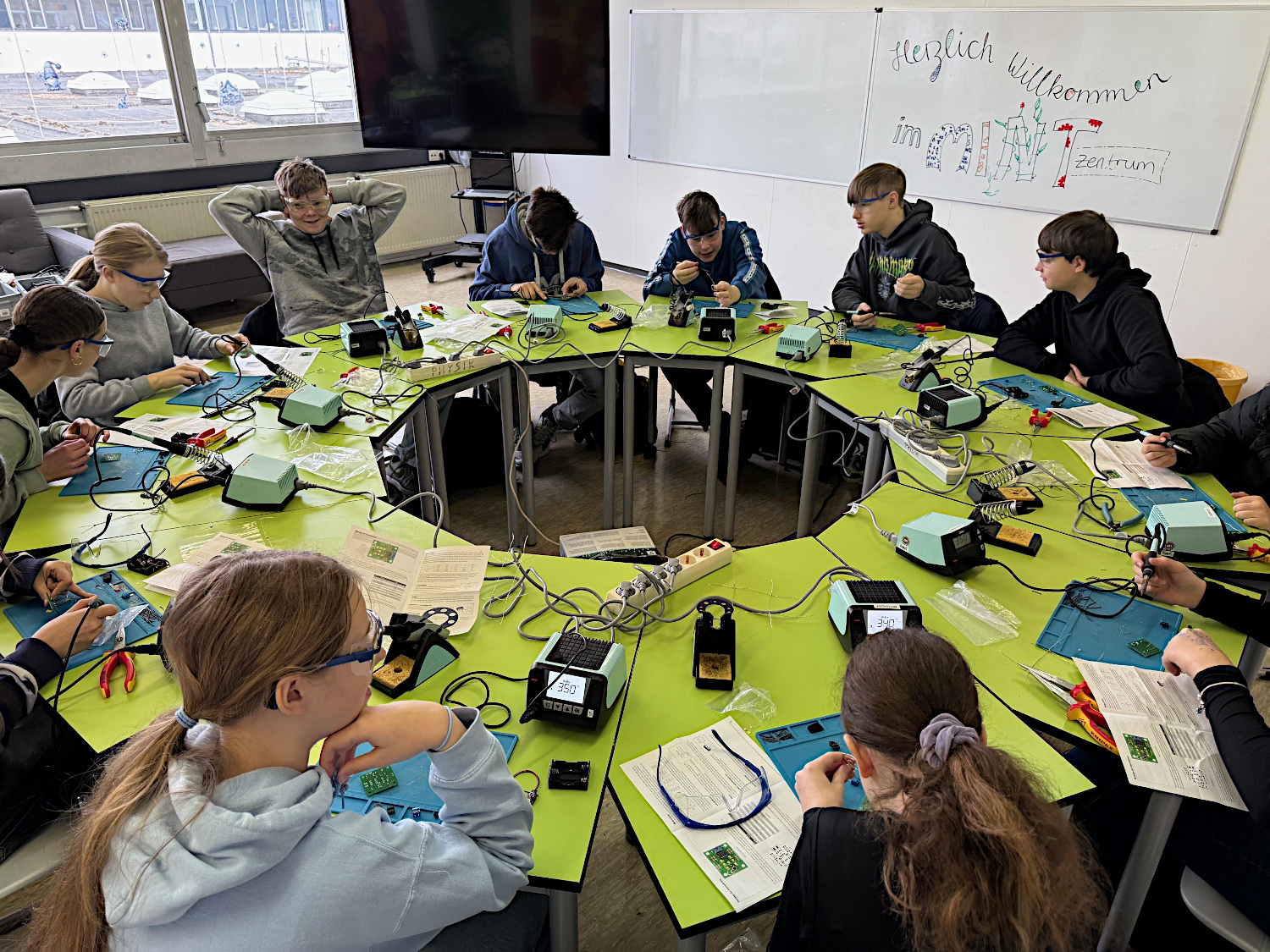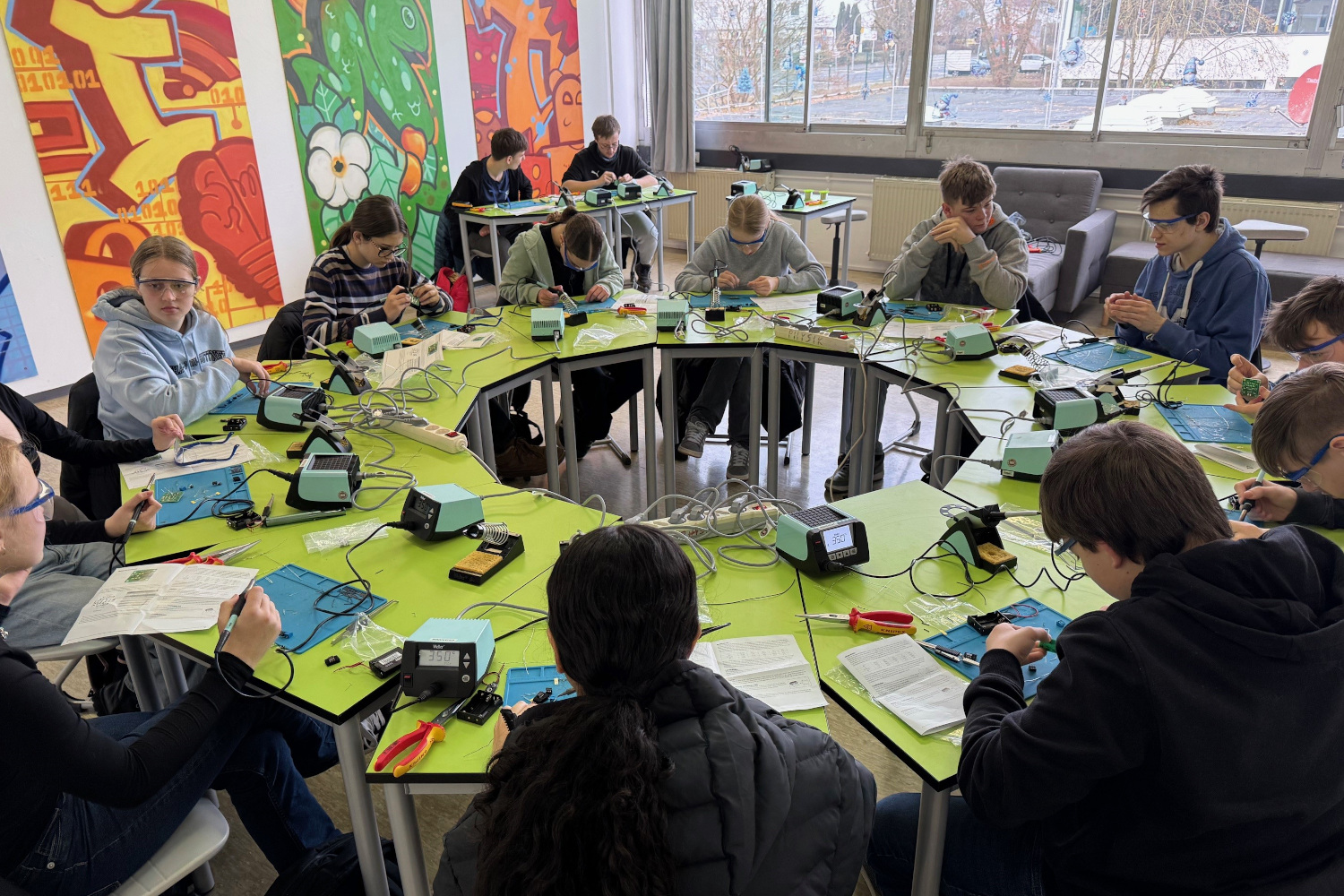 Der Workshop besteht aus zwei Tagen. Der erste Tag fand heute im MINT-Zentrum statt, wo fleißig gelötet wurde. Demnächst folgt ein Tag auf dem Provadis Campus mit der Arbeit an acht 3-D-Druckern. Ziel der Projekttage ist neben der MINT-Förderung die Berufsorientierung. Denn die Schülerinnen und Schüler erhalten durch die typischen Tätigkeiten und den Besuch in den Lehrwerkstätten auf dem Provadis Campus einen Eindruck von den Elektroberufen und dem additiven Fertigen. Der positive Nebeneffekt: Nach der 3-D-Druckeinheit bei Provadis sind alle Jugendlichen fit, um auch zukünftig in den Selbstlernphasen des MINT-Zentrums weiter mit 3-D-Druck an den Druckern vor Ort zu experimentieren.