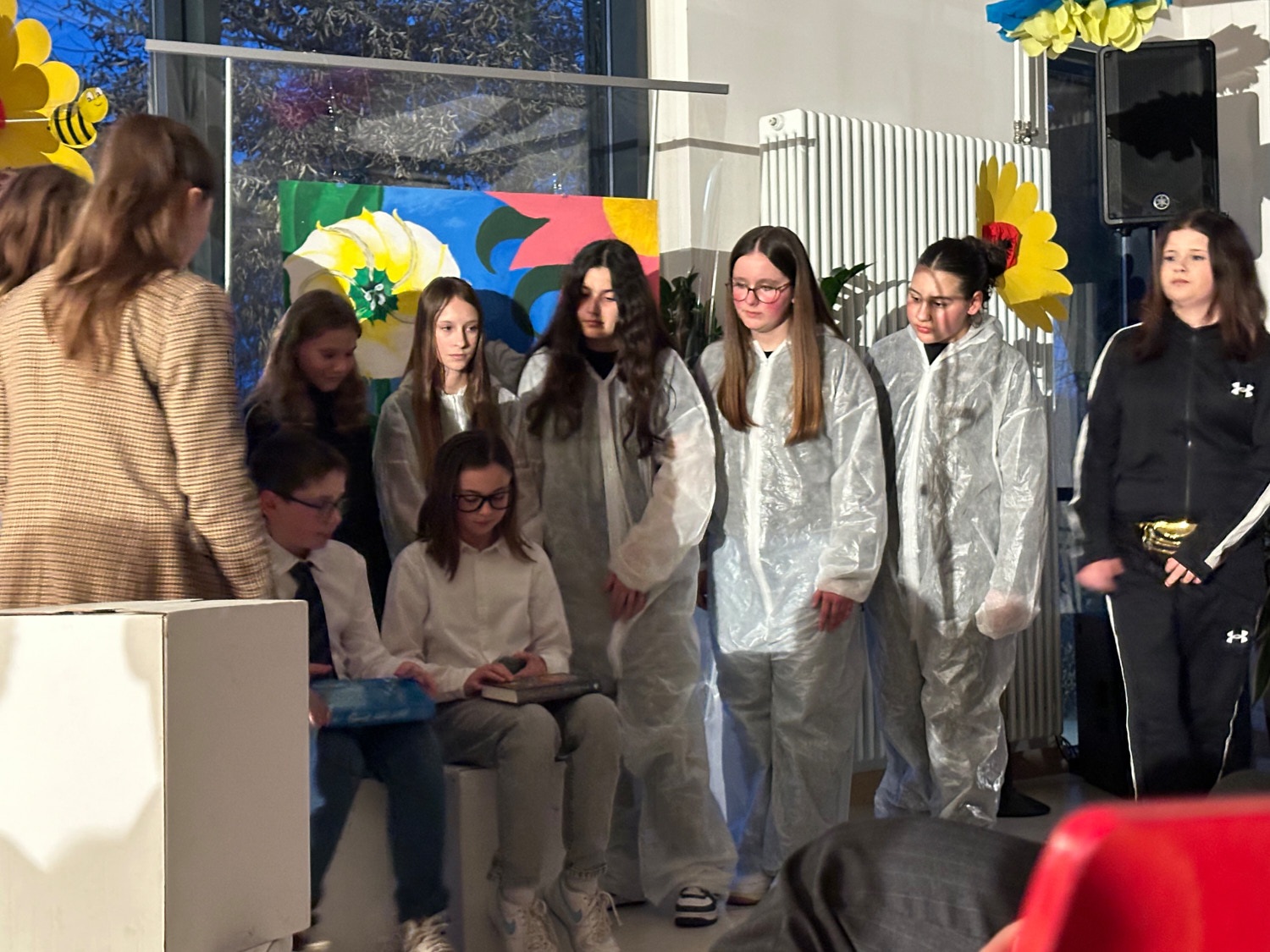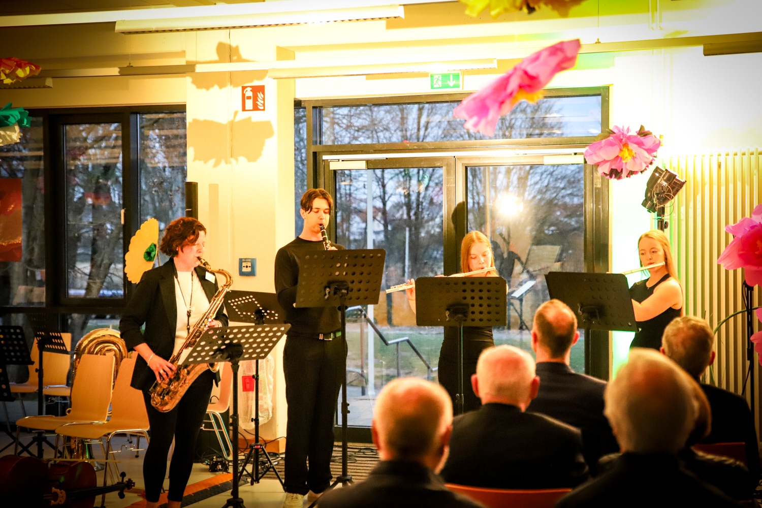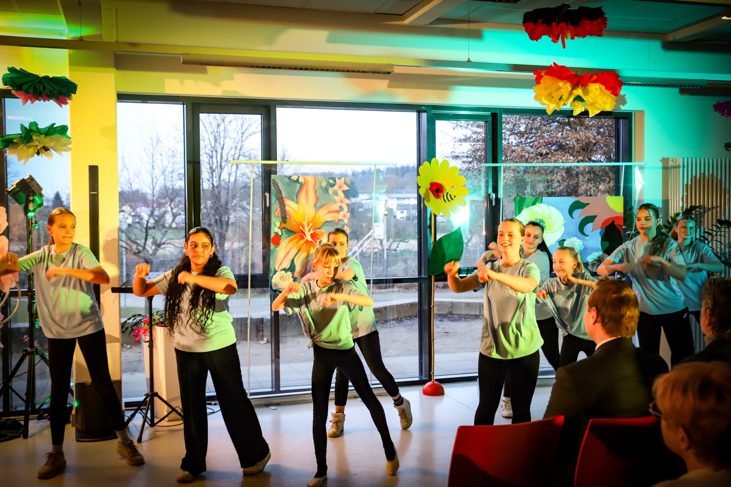 55 Jahre hat die Schule nun auf dem Buckel, und doch sprüht sie vor Leben: Im Jubiläumsjahr gönnt sich die Nidderauer Gesamtschule eine ganze Reihe von Sonderveranstaltungen, zum Auftakt zeigte die „Bertha-Art-Night“ unter dem Motto „Irgendwas ist immer“ einen bunten Querschnitt ihres Angebots aus den verschiedenen Unterrichtsschwerpunkten mit Musik, Tanz, Theater, Kunst, Technik und naturwissenschaftlichen Präsentationen. Eine ganze Reihe illustrer Gäste war gekommen, um der mittelalten Dame „Bertha“ zum halbrunden Geburtstag zu gratulieren und im Rahmen einer Akademischen Feier ihre Anerkennung für die geleistete Arbeit auszusprechen. Schulleiter Harald Klose begrüßte Ministerialrat Marcus Kauer, Leiter des Referats für Kulturelle Bildung im hessischen Kultusministerium, den Kreisschuldezernenten Jannik Marquart, die Schulamtsdirektorin Maren Schrader, Nidderaus Bürgermeister Andreas Bär, den ehemaligen Bundestagsabgeordneten Bernd Reuter sowie zahlreiche ehemalige Lehrkräfte und Schulleitungsmitglieder, die die Entwicklung der Nidderauer Gesamtschule von Anbeginn oder ein Stück ihres Weges begleitet und gefördert haben. Als eine „Schule mit Herz“ bezeichnete Ministerialrat Marcus Kauer die „Bertha“, die ihm mit ihren wegweisenden Konzepten im Bereich „kulturelle Bildung“ stets Perspektiven auf seinem beruflichen Weg geboten habe. Ein Geschenkpaket voller Versprechen brachte Schuldezernent Jannik Marquart zum Geburtstag mit: Bereits Mitte nächsten Jahres werde das dringend benötigte Gebäude mit zusätzlichen Klassenräumen bezugsfertig sein, noch im laufenden Jahr begännen die Sanierungsarbeiten im Hauptgebäude, und auch mit der fristgerechten Fertigstellung des Oberstufengebäude zum Schuljahr 2029/30 könne die Schulgemeinde rechnen. „Versprochen ohne Wenn und Aber“, schloss der Schuldezernent unter Beifall seine Ausführungen. Maren Schrader vom Staatlichen Schulamt hob in ihren Grußworten das pädagogische Gesamtkonzept der „Bertha“ hervor, in dem neben Vermittlung von Bildung und Wissen auch immer die Entfaltungsmöglichkeiten der Schülerinnen und Schüler besondere Rolle spielten. „Die heutige Art Night zeigt, wie Schule und Kultur miteinander verschmelzen“, so die Schulamtsdirektorin. Auf die enge Verbindung zwischen Schule und Kommune ging Nidderaus Bürgermeister Andreas Bär in seiner Rede ein und nannte als Beispiel die regelmäßigen gemeinsam durchgeführten Gedenkveranstaltungen zum jüdischen Leben in den verschiedenen Stadtteilen. „Es gibt viel zu feiern, aber das Beste liegt noch vor uns“, spielte er auf die Zukunft der „Bertha“ als Gesamtschule mit gymnasialer Oberstufe an. Bernd Reuter, ehemaliger Bundestagsabgeordneter und in den Gründungsjahren der „Bertha“ Erster Stadtrat in Nidderau, nahm die Gäste mit auf eine humoristische Zeitreise ins „bildungspolitischen Niemandsland“ zu Beginn seiner Amtszeit. Harte Verhandlungen seien nötig gewesen, um Landwirte zum Verkauf von Flächen für den geplanten Schulbau zu überreden. „Zuckerrübe, Getreide, Dickwurz, Bildung“, lautete schließlich die Fruchtfolge, vor der auch hartleibige Landbesitzer eingeknickt seien. Trotzdem sei das alles viel schneller gegangen als heutzutage, verkniff Reuter sich nicht den kleinen Seitenhieb gegen die aktuelle Baupolitik. Zum Abschluss der Akademischen Feier, die von Musik-, Theater- und Tanzgruppen festlich umrahmt wurde, dankte Direktor Harald Klose den Rednerinnen und Rednern und lud alle Anwesenden zu einem Rundgang durch die Schule ein, wo Schülerinnen und Schüler gemeinsam mit ihren Lehrkräften ihre mit Engagement und Experimentierfreude erarbeiteten Ergebnisse präsentierten.