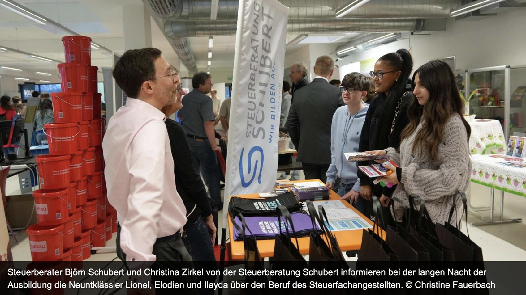Nidderau – Um die wirtschaftliche Entwicklung heute und künftig zu gewährleisten, werden dringend ausgebildete Fachkräfte in allen Branchen benötigt. Um die Arbeitnehmer von morgen über Unternehmen und Berufe vor Ort bei Dienstleistern, Handwerkern, in Handel und Industrie oder im Gesundheitsbereich zu informieren, fand jetzt die „1. Lange Nacht der Ausbildung“ an der Bertha-von-Suttner-Schule statt.Schulleitungsmitglied Andreas Dotzauer begrüßte gemeinsam mit Bürgermeister Andreas Bär (SPD) und Christian Kinner 18 Nidderauer Betriebe aus der Region zur von der Schule in Kooperation unter anderem mit der Bürgerstiftung organisierten Veranstaltung. Das Motto „Unternehmen treffen auf die Fachkräfte von morgen“ war Programm. Vor allem Haupt- und Realschüler der Bertha-von-Suttner-Schule sowie allen Schulen aus der Region hatten klassenweise und in Begleitung ihrer Familien Gelegenheit, sich an den Informationsständen unverbindlich bei den Praktikern über Ausbildungsberufe zu informieren.