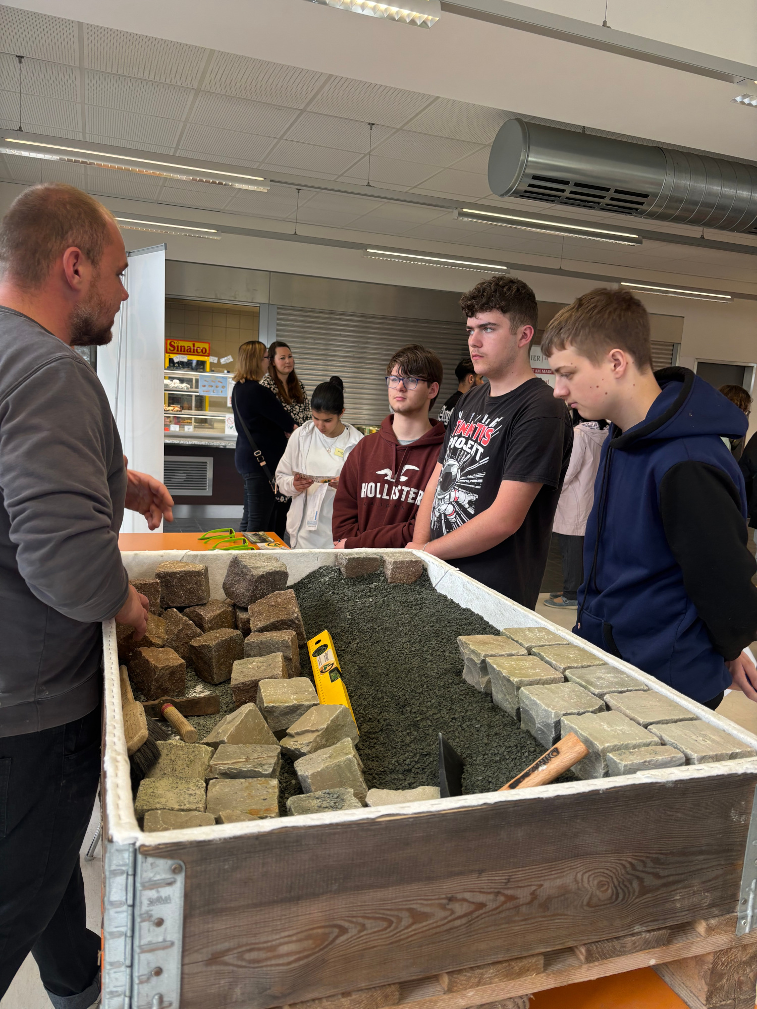 Am 25. und 26. März bot die Bertha-von-Suttner-Schule unter der Organisation der Kollegen Matthias Stein und Andreas Dotzauer sowie des Berufsmesseteams den Schülerinnen und Schülern der 8., 9. und 10. Klassen mit der bereits 8. Berufsmesse Orientierung und Unterstützung. Dabei unternahm die Schule außerdem einen tatkräftigen Schritt gegen den Fachkräftemangel in der Umgebung. Denn insgesamt 55 Institutionen waren mit ihren Vertreterinnen und Vertretern zu Gast in der Schule - regionale Unternehmen aus Handwerk und Einzelhandel, Dienstleister aus verschiedenen Branchen, zum Beispiel das Autohaus Staaf, die Bundeswehr, Schick Industriebau, Systeex oder das Tutto Café, Kreis- und Stadtverwaltungen sowie weiterführende Schulen, wie die August-Bebel-Schule. Ausgestattet mit umfangreichem Informations-, Anschauungs- und Übungsmaterial standen die Aussteller den Schülerinnen und Schülern Rede und Antwort – mit dem Ziel, potenzielle Auszubildende für ihre Betriebe zu gewinnen. Die meisten Unternehmen stellten den Jugendlichen dafür sogar interessante Testobjekte zum Üben zur Verfügung, sodass sie in den jeweiligen Berufszweig aktiv hineinschnuppern konnten. Die Schülerinnen und Schüler konnten in der Mensa so beispielsweise Steine verlegen, erste Hilfe an einer Hundefigur üben oder Drähte löten. Diese interaktiven Angebote schufen eine gute Atmosphäre, in der die Schülerinnen und Schülern unkompliziert mit den Unternehmensvertretern ins Gespräch kamen. Darüber hinaus konnten sich die Jugendlichen ein besseres Bild davon machen, welche Tätigkeiten bestimmte Berufe beinhalten und erhielten neue Impulse für die eigene Berufswahl. Die Bertha-von-Suttner-Schule bedankt sich bei allen beteiligten Unternehmen herzlich für die wertvolle Zusammenarbeit. Besonders hervorzuheben ist das Engagement der Helfenden aus dem Team sowie der 10er A-Klassen, deren Einsatz die Veranstaltung erst möglich gemacht haben. Bitte beachten Sie auch den Bericht des Hanauer Anzeigers zur langen Nacht der Ausbildung, die im Kontext der diesjährigen Berufsmesse erstmalig in Kooperation mit der Bürgerstiftung und dem „Stadtmagazin mein Nidderau“ erstmalig durchgeführt wurde. Bericht: Julia Hiekel und Harald Klose Fotos: Julia Hiekel