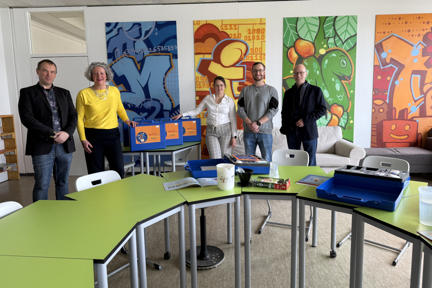 Mitglied der Schulleitung und Chemielehrer Andreas Dotzauer sowie MINT-Zentrum-Verantwortlicher Matthias Stein sehen in der Experimentierkiste „eine gute Chance, um Grundschulkindern mit den erprobten Experimentieranleitungen und Materialien die Phänomene der Naturwissenschaften anschaulich zu vermitteln.“ Künftig sollen auch ältere Schülerinnen und Schüler zusammen mit den Grundschulkindern in einem Workshopangebot des MINT-Zentrums gemeinsam forschen.