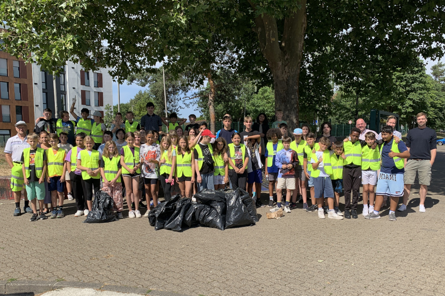 Bevor es in die Ferien geht, wird der Müll beseitigt: Wie jedes Jahr kurz vor den Sommerferien rückten auch in diesem Jahr im Rahmen der Aktion „Sauberhafter Schulweg“ hessenweit rund 20.000 Schülerinnen und Schüler dem Dreck und Unrat auf den Wegen und Grünanlagen rings um ihre Schulen zu Leibe. An der Bertha-von-Suttner-Schule Nidderau waren es die Klassen 5c und 5d, die begleitet von ihren Klassenlehrkräften Anne Reinstädt und Janez Cevka sowie der Klasse 9A1 die unterrichtliche „Leerlaufphase“ zwischen Notenkonferenz und Zeugnisausgabe nutzten und den Abfall wegräumten, der sich im Laufe der letzten Wochen an den Wegrändern rings um die Schule angesammelt hatte. Ausgerüstet mit Müllsäcken, Greifzangen und Handschuhen durchforsteten die Kinder Hecken, Wegränder und die Uferböschung entlang des täglichen Schulweges nach nachlässig oder illegal entsorgtem Wohlstandsmüll und förderten neben Papierabfällen, Glasflaschen und Plastikmüll auch Unappetitliches zutage wie Socken, Unterhosen und Kondome. Unterstützung gab es vom Bauhof der Stadt Nidderau, dessen Mitarbeiter nicht nur die Arbeitsgeräte zur Verfügung gestellt hatten, sondern am Ende der Aktion den gesammelten Müll auf einen LKW luden und abtransportierten. Stadtrat Rainer Vogel und Nicole Hartenfeller vom Fachbereich Umwelt der Nidderauer Stadtverwaltung lobten die etwa 75 Schülerinnen und Schülern für ihren Fleiß und dankten allen Beteiligten für ihr Engagement im Dienst der Allgemeinheit. S. Falk, 20. Juli 2023