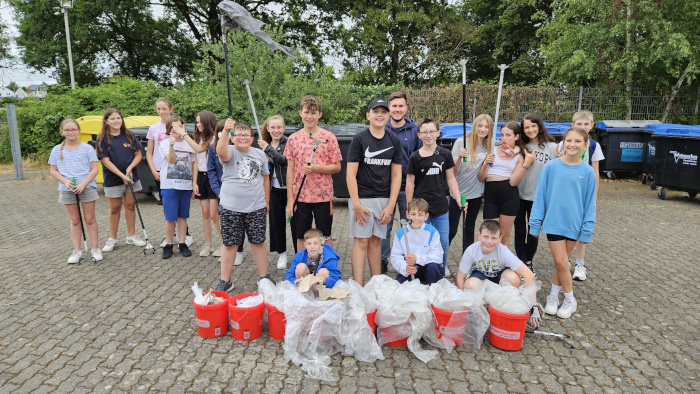 Im Rahmen der Unterrichtseinheit "Müll und Recycling" nahm die Klasse 6e dieser Tage an der Aktion "Sauberer Schulweg" teil. Dabei sammelten die Schülerinnen und Schüler gemeinsam mit ihrem Lehrer für das Fach Gesellschaftslehre, Yannick Rehahn, mit Zangen und Eimern Müll entlang des Schulweges von der Bertha-von-Suttner-Schule in Richtung Bahnhof Windecken auf. Eingesammelt wurde Müll und Unrat, der nicht in den Mülleimern landete, sondern auf dem Boden oder im Gebüsch lag. Unterstützt wurde die Aktion von der Abschlussklasse 10B2 unter der Leitung von Oberstudienrat Christian Lübke. Mit dieser Aktion sollen die Schülerinnen und Schüler der Bertha-von-Suttner-Schule für eine ordnungsgemäße Müllentsorgung und den Umweltschutz sensibilisiert werden.