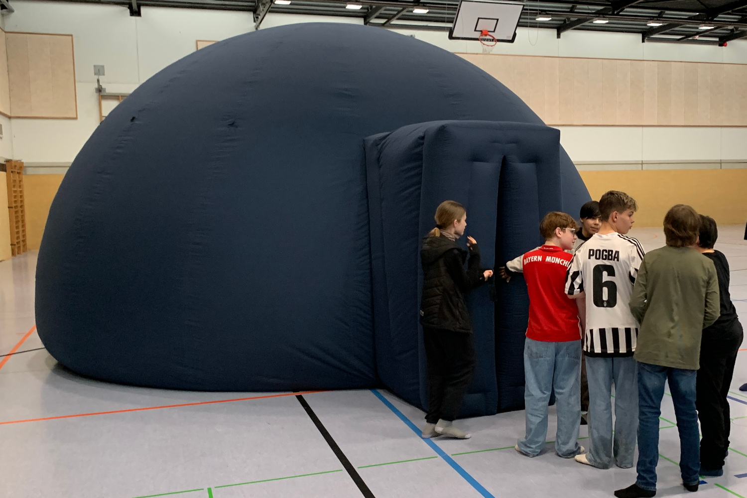 Am 06. Mai 2024 war die Sporthalle der Bertha-von-Suttner Schule Schauplatz eines virtuellen Ereignisses: Ein mobiles Planetarium hatte dort seinen Auftritt und faszinierte die Schülerinnen und Schüler gleichermaßen. Die interaktive Präsentation widmete sich den Themen „Licht“ und „Weltraum“.