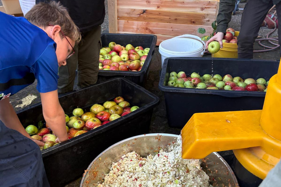Rechtzeitig zur Erntezeit hatten die neuen fünften Klassen der Bertha-von-Suttner-Schule gleich eine wichtige Aufgabe, um die Umwelt-AG zu unterstützen: Sie befreiten die Apfelbäume, die das Schulgelände säumen, von ihren reifen Früchten. Es wurde gerüttelt und geschüttelt und anschließend alle geeigneten Exemplare eingesammelt und zur Schule gebracht.