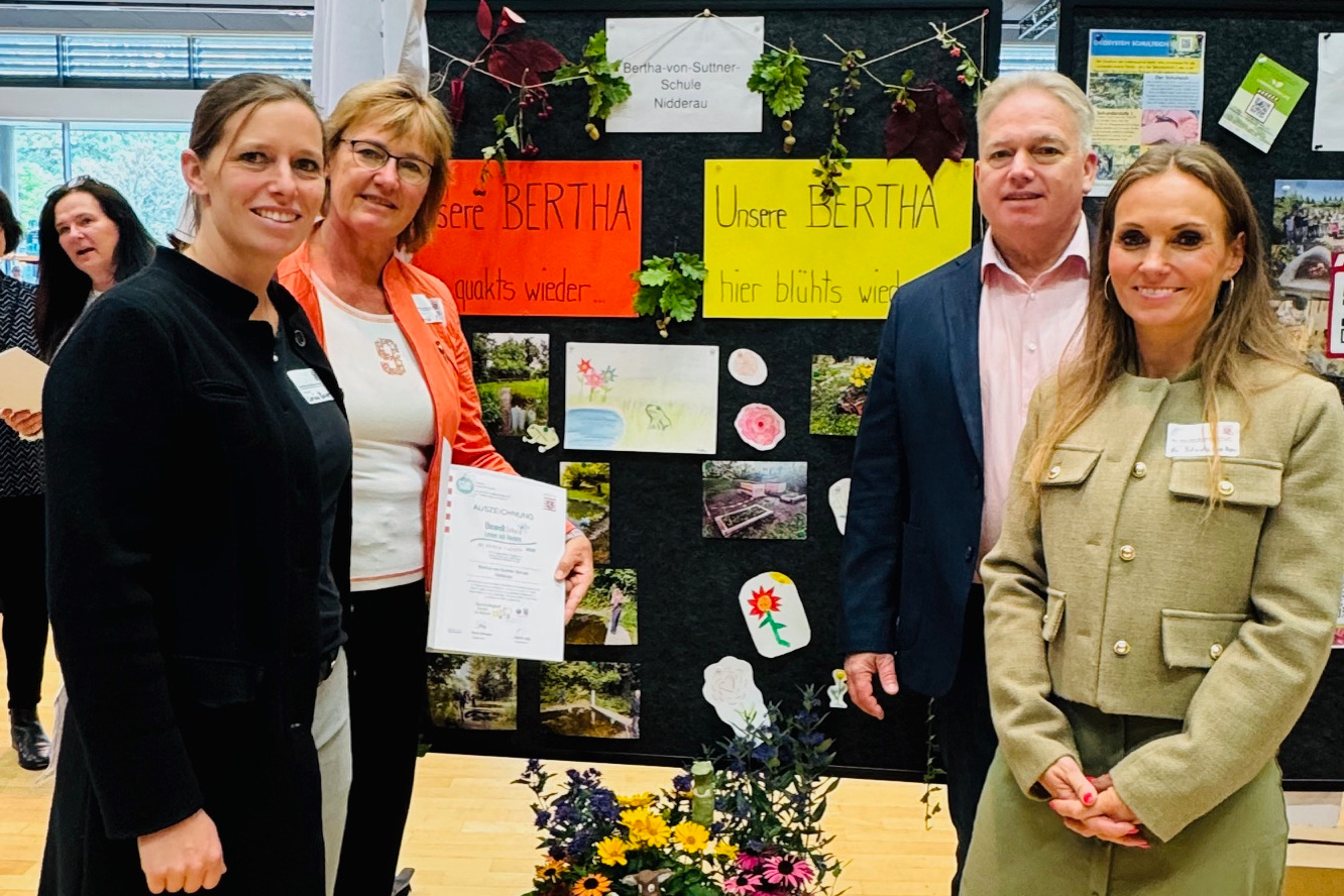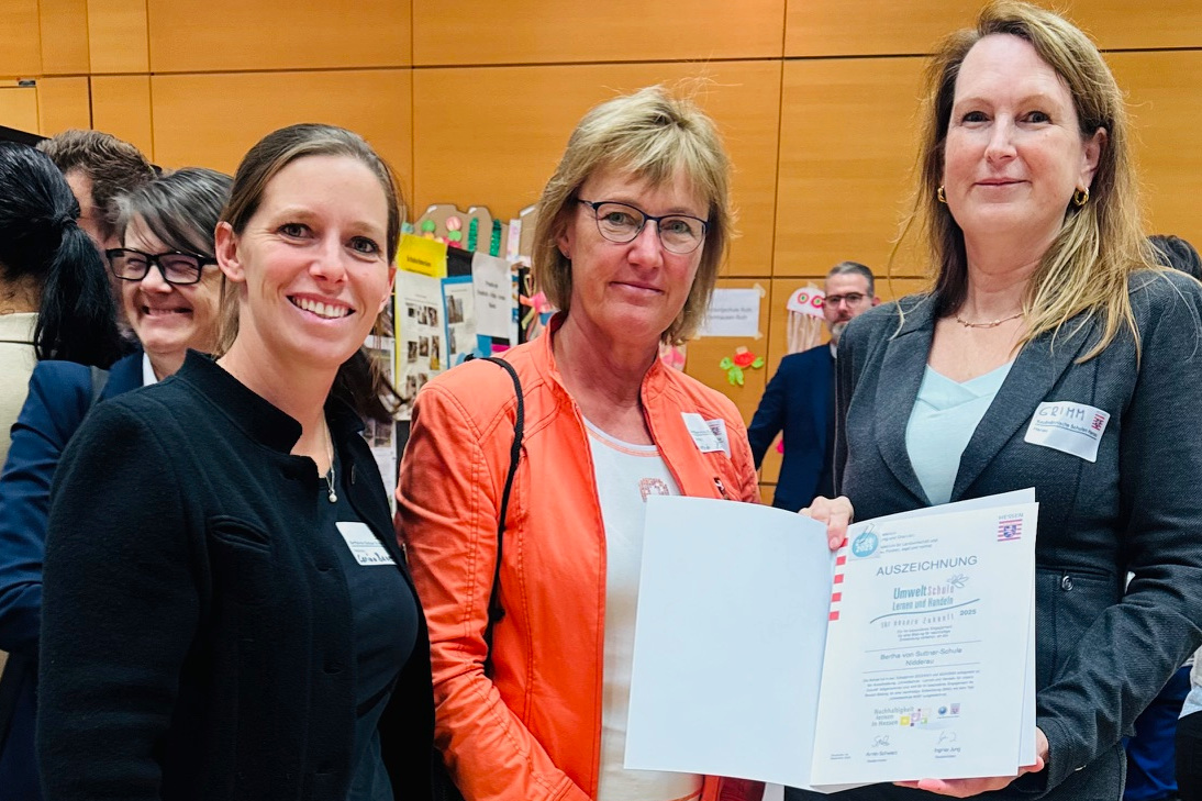Wir freuen uns, dass die Bertha-von-Suttner-Schule in dieser Woche erneut als Umweltschule rezertifiziert wurde. Ein besonderes Dankeschön geht an die Kolleginnen Karin Braun und Carina Bauer, die das Umweltlernen an der Bertha mit viel Herz und Engagement voranbringen.