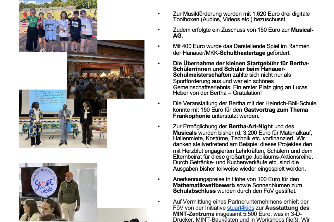 Die Bertha freut sich über außerschulisches Engagement ihrer Schülerinnen und Schüler: