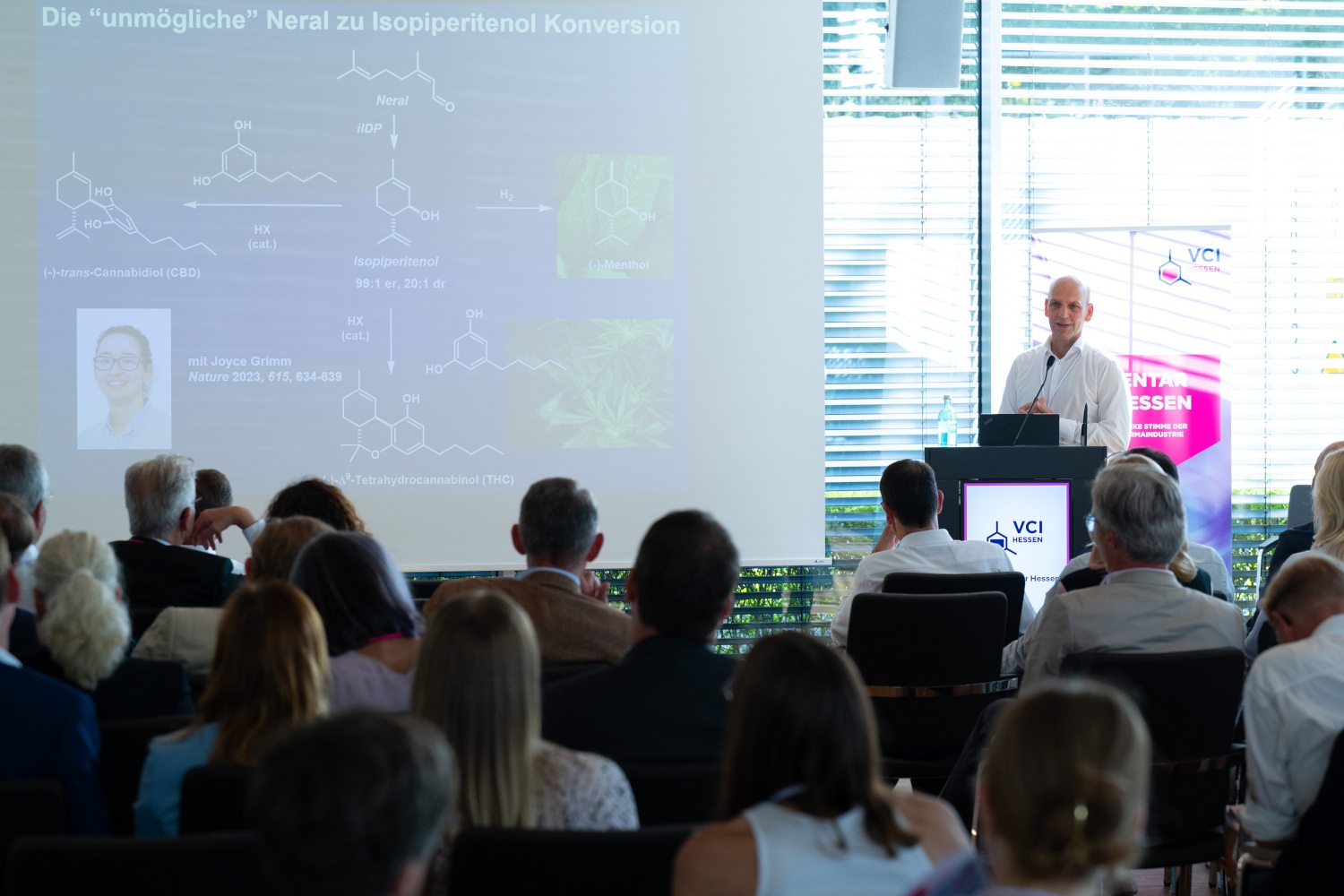 Zuvor konnten die Schülerinnen und Schüler sowie deren Lehrkräfte vom Landesvorsitzenden des VCI Hessen Dr. Joachim Kreysing und Ministerpräsident Boris Rhein in einer Veranstaltung des VCI-Hessen erfahren, welche wichtige Rolle die chemische Industrie in Hessen spielt. Wichtige Impulse, wie man für Naturwissenschaften begeistern kann, konnten die die Schulen vom Chemie-Nobelpreisträger und Direktor am Max-Planck-Institut für Kohlenforschung Prof. Benjamin List sowie vom Unternehmen Merck mitnehmen.